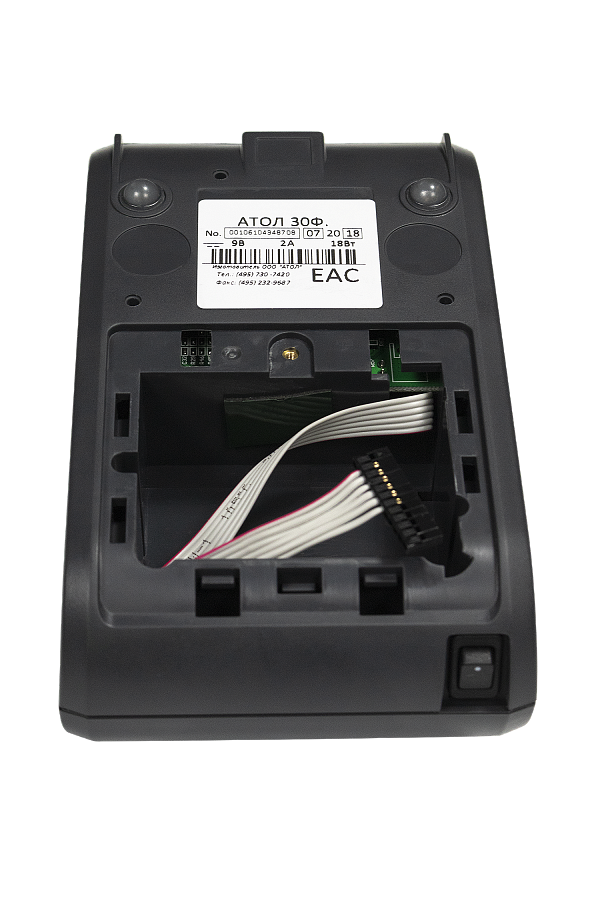 Онлайн касса Атол 30Ф+ разработана с учетом требований, предъявляемых к онлайн ККТ малыми предпринимателями: за минимальные вложения полностью соответствовать требованиям 54-ФЗ. ККТ Атол 30Ф+ разработана на базе Атол 30Ф, отличается наличием интерфейса для подключения денежного ящика.